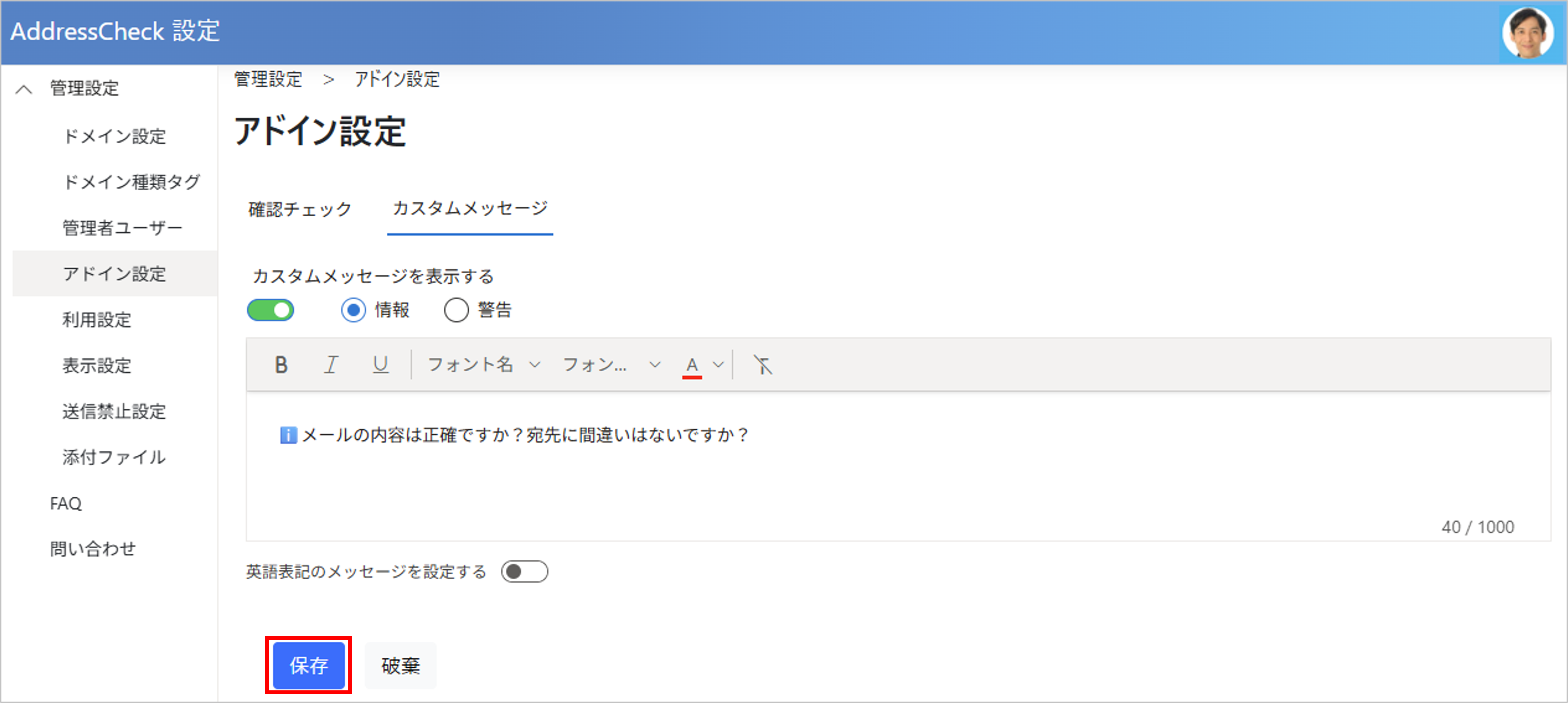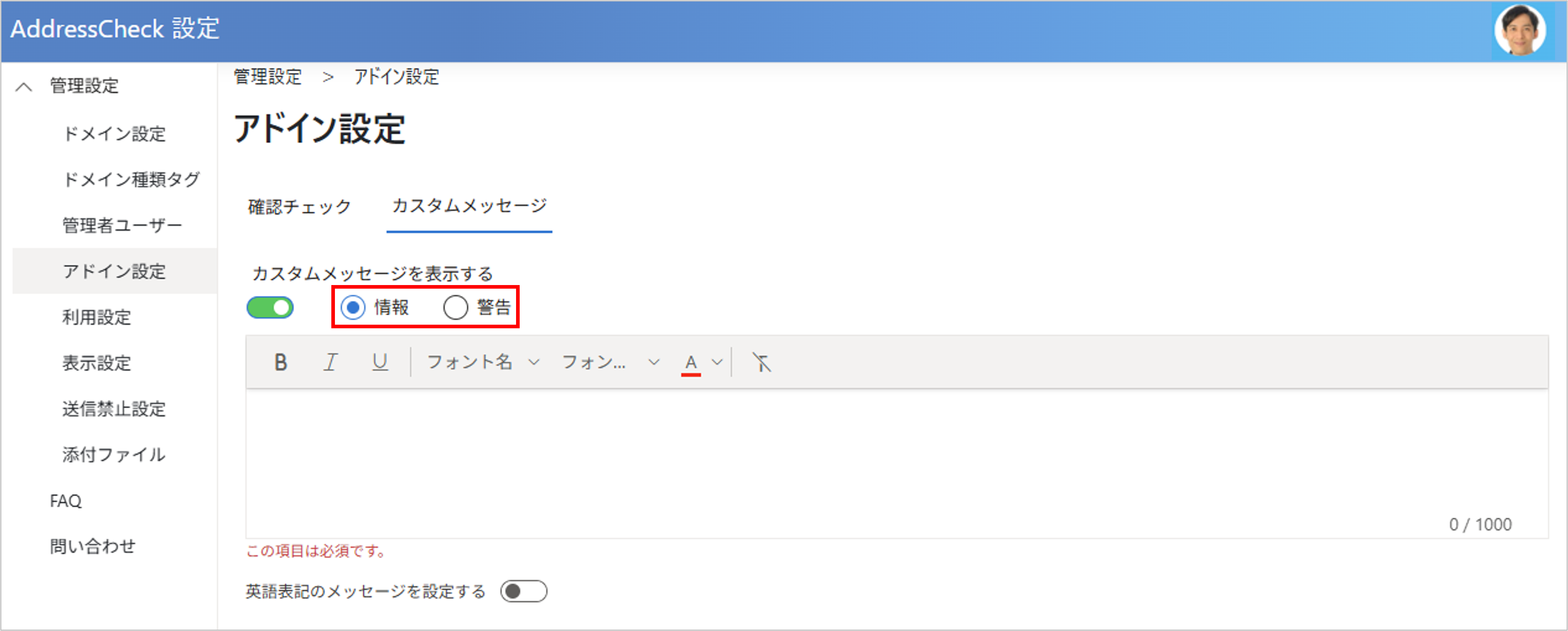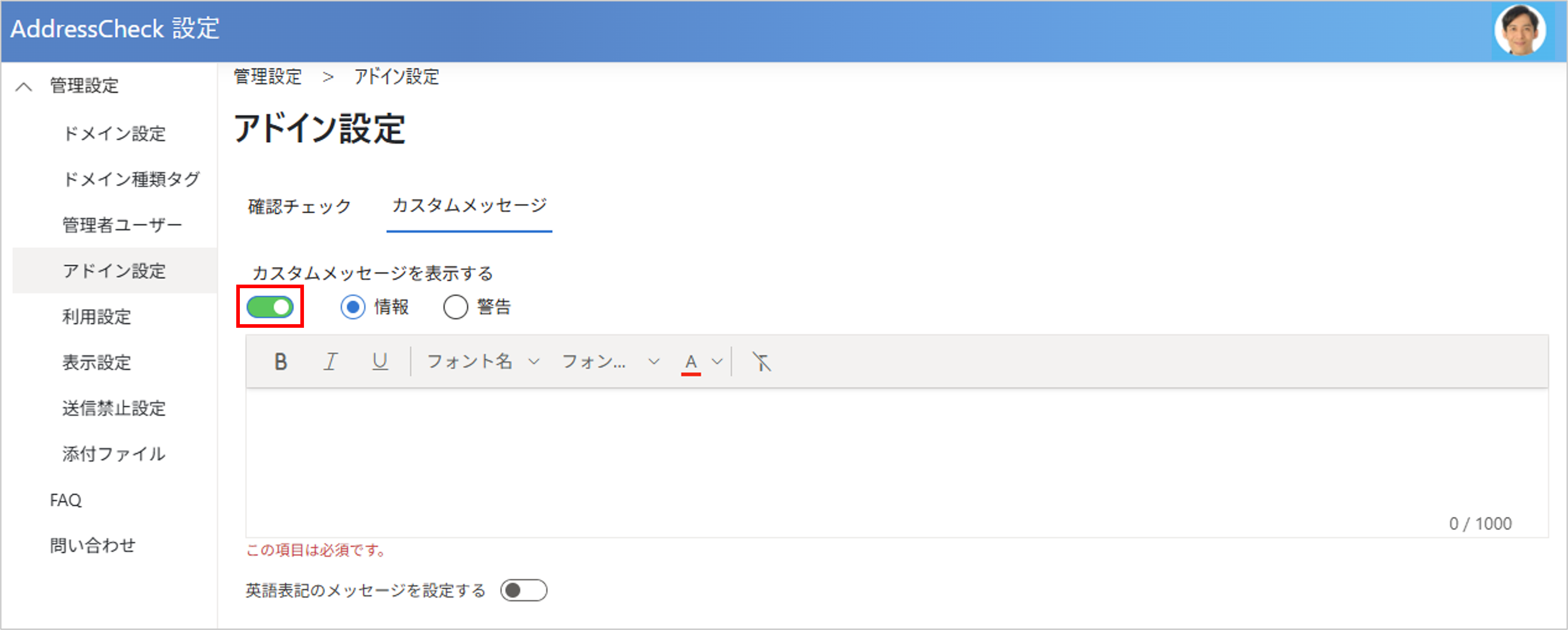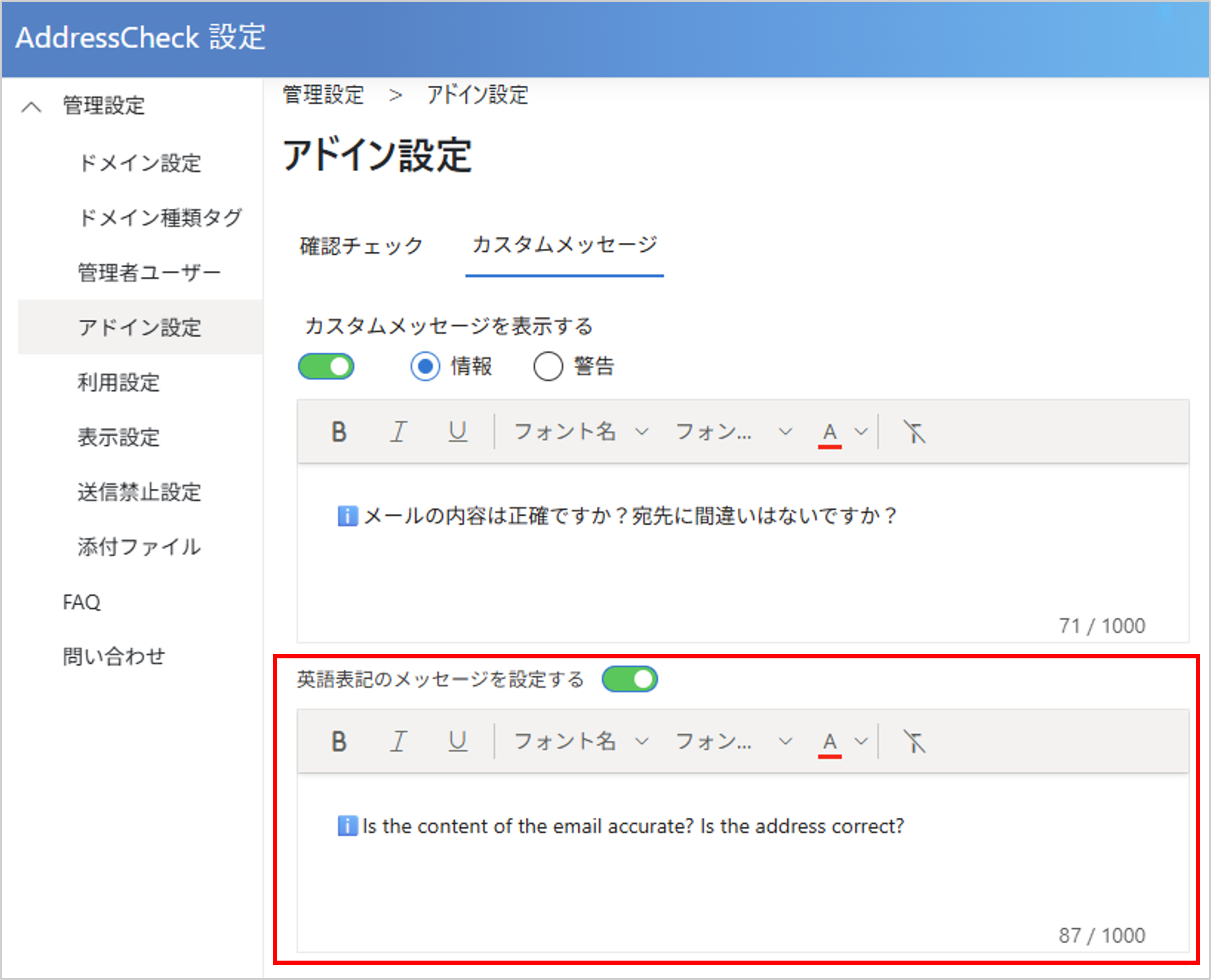 管理者ユーザーはAddressCheckの管理者ページにサインインし、AddressCheckの設定を変更または確認することができます。
