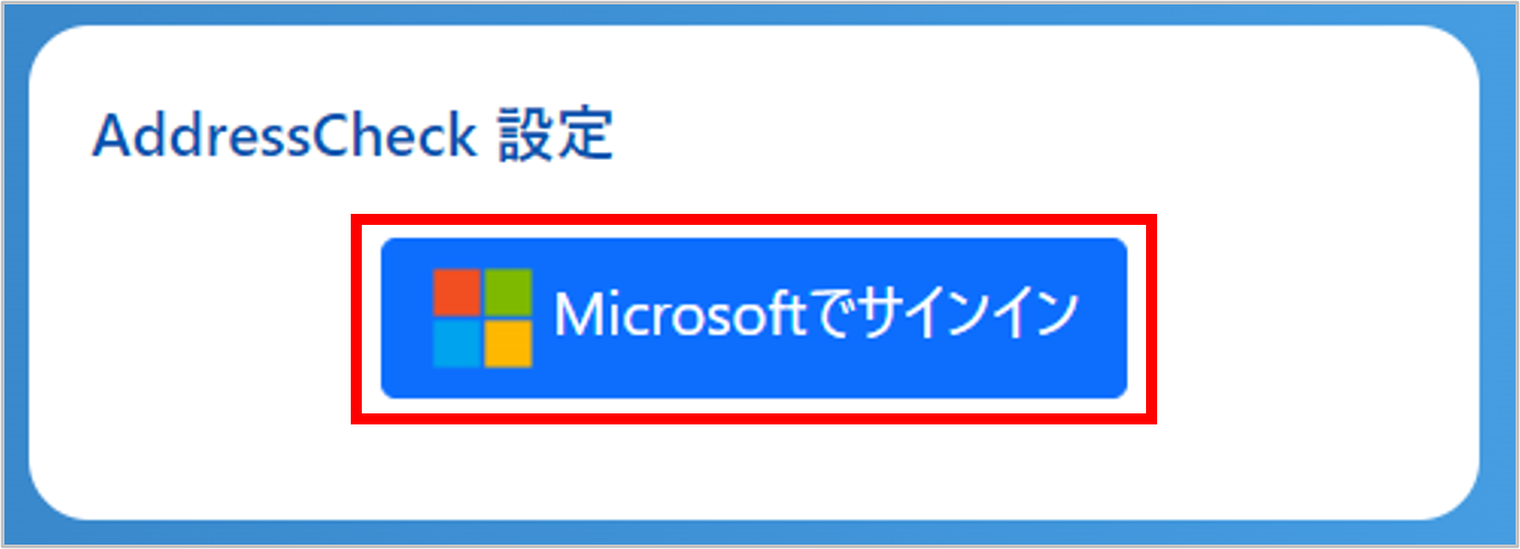 https://addresscheck-config.bbsonlineservices.net/ - 「Microsoftでサインイン」をクリックし、管理者アカウントでサインインします。