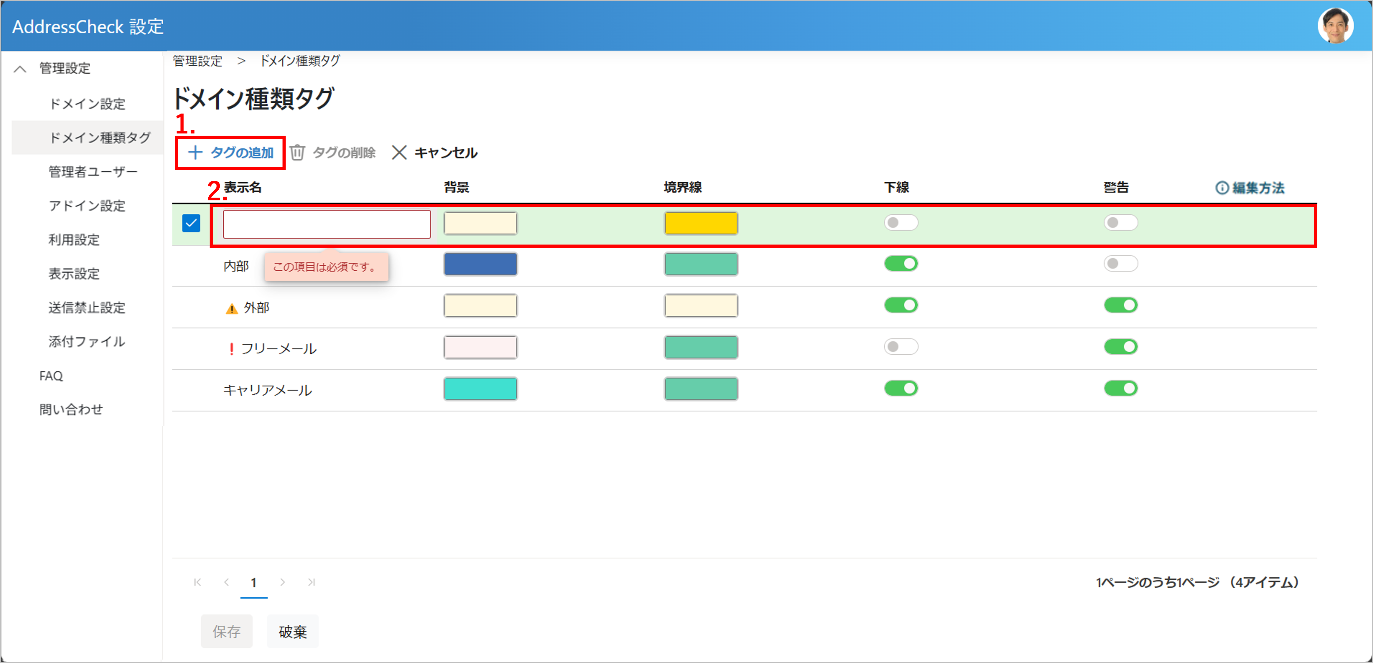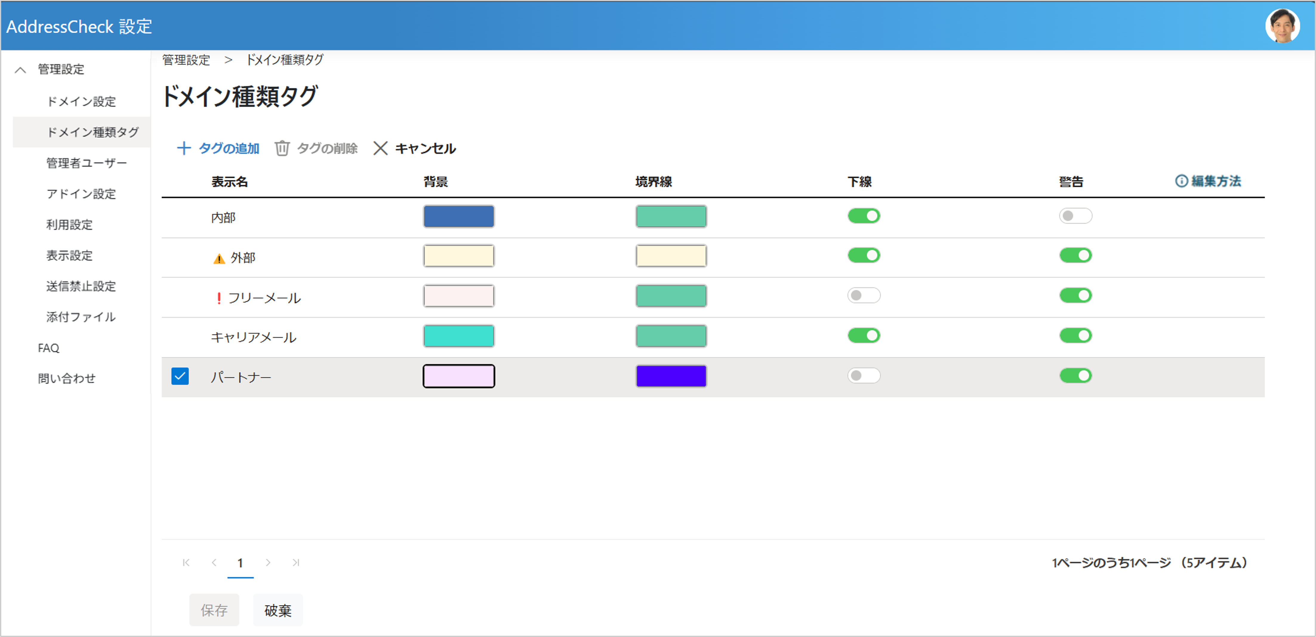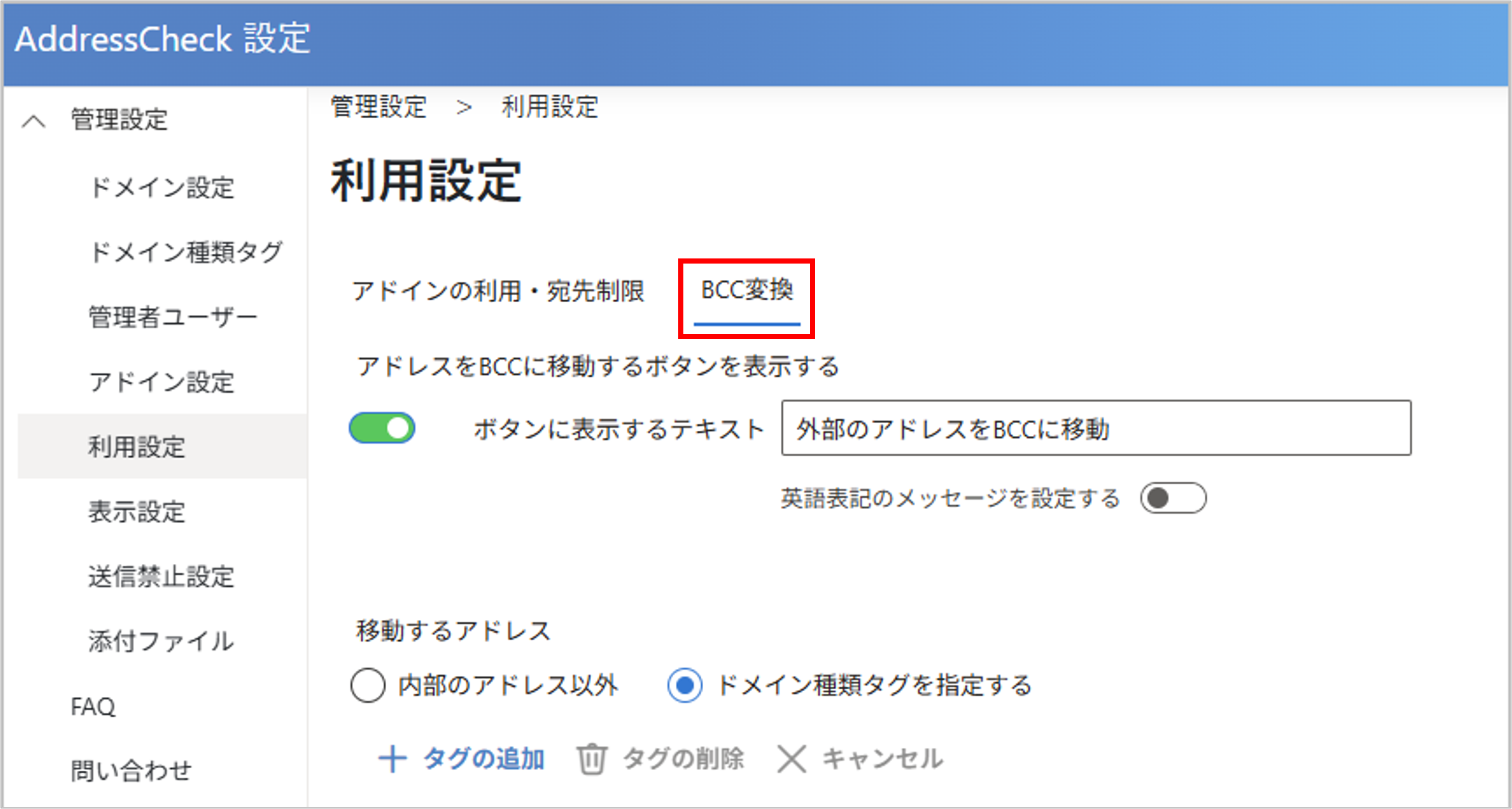 ドメイン種類タグの 有効 / 無効 切り替え