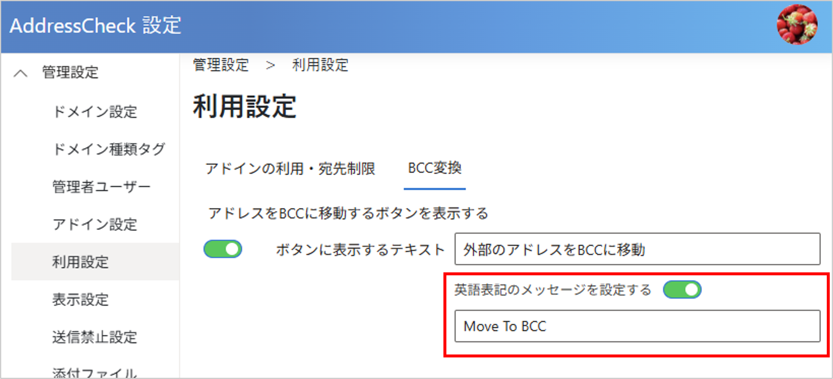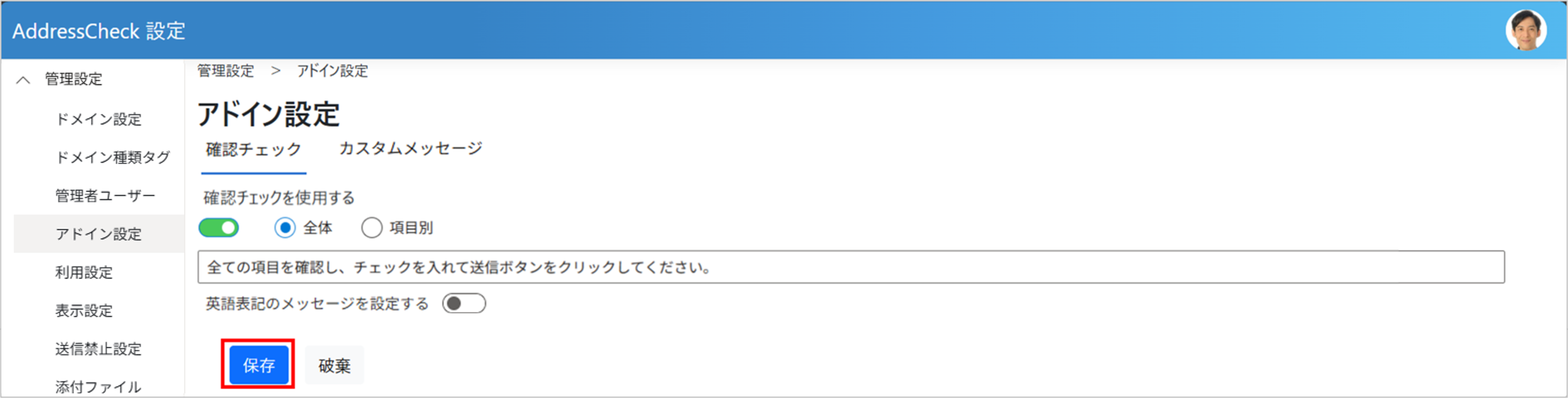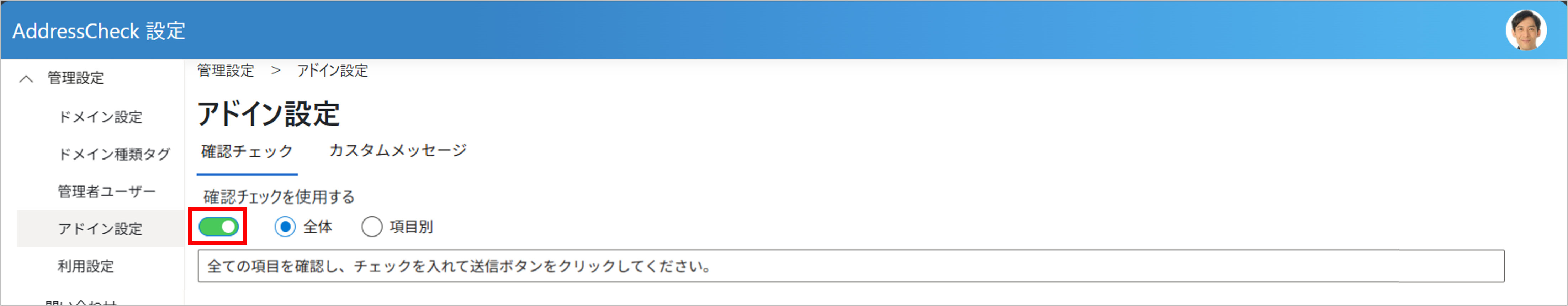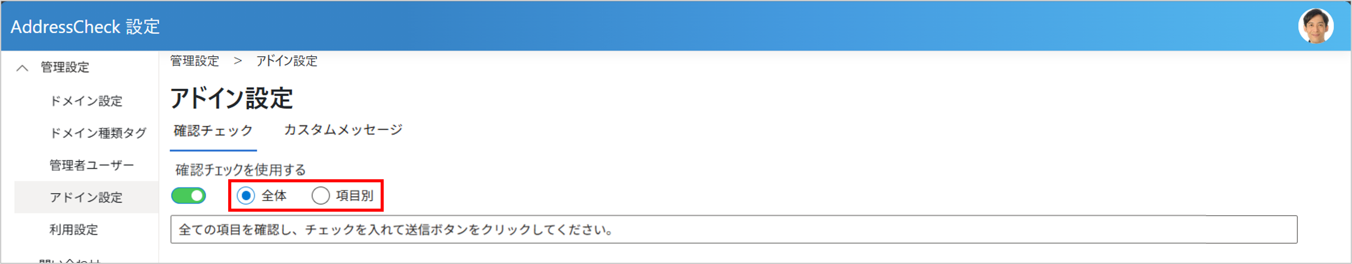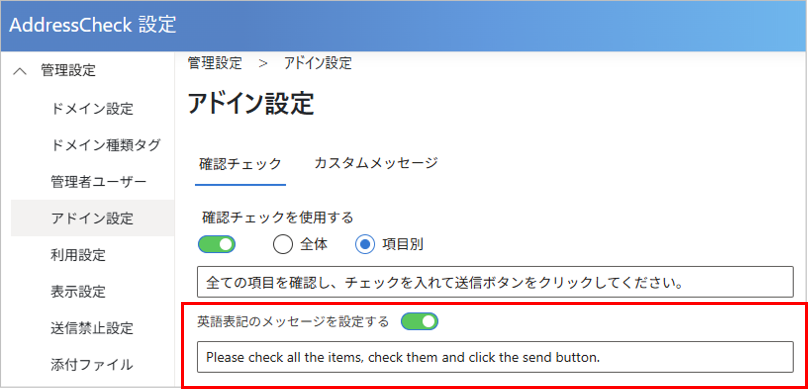 AddressCheckの各種設定について説明します。