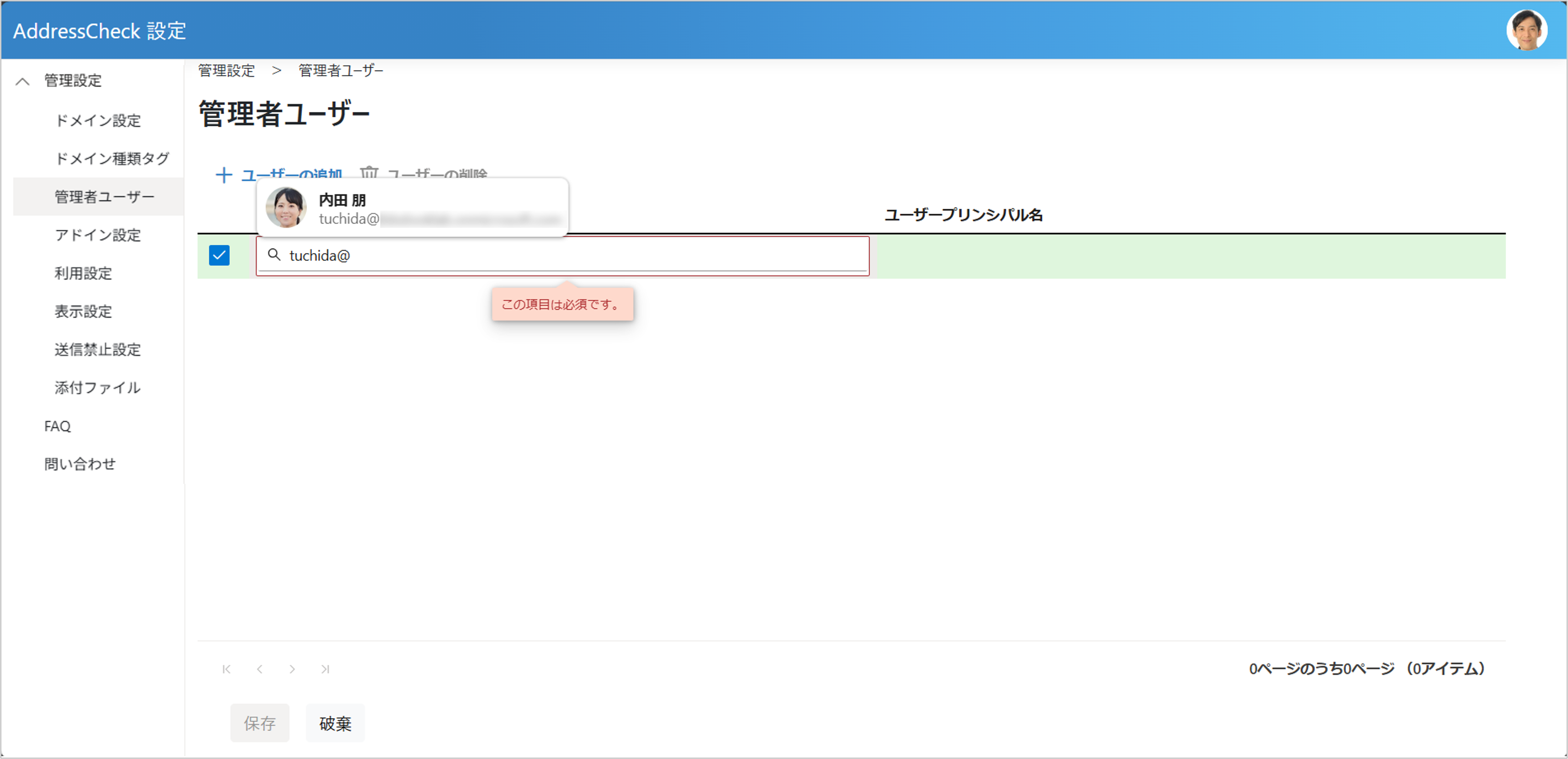AddressCheckの管理者ユーザーの詳細は「管理者ユーザーの設定」をご参照ください。