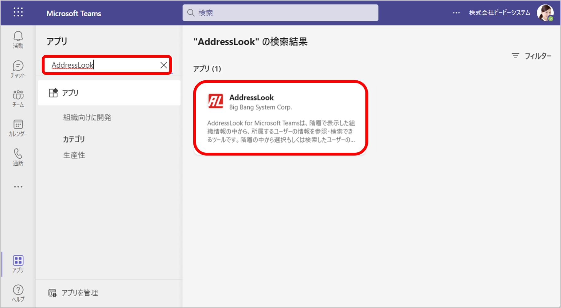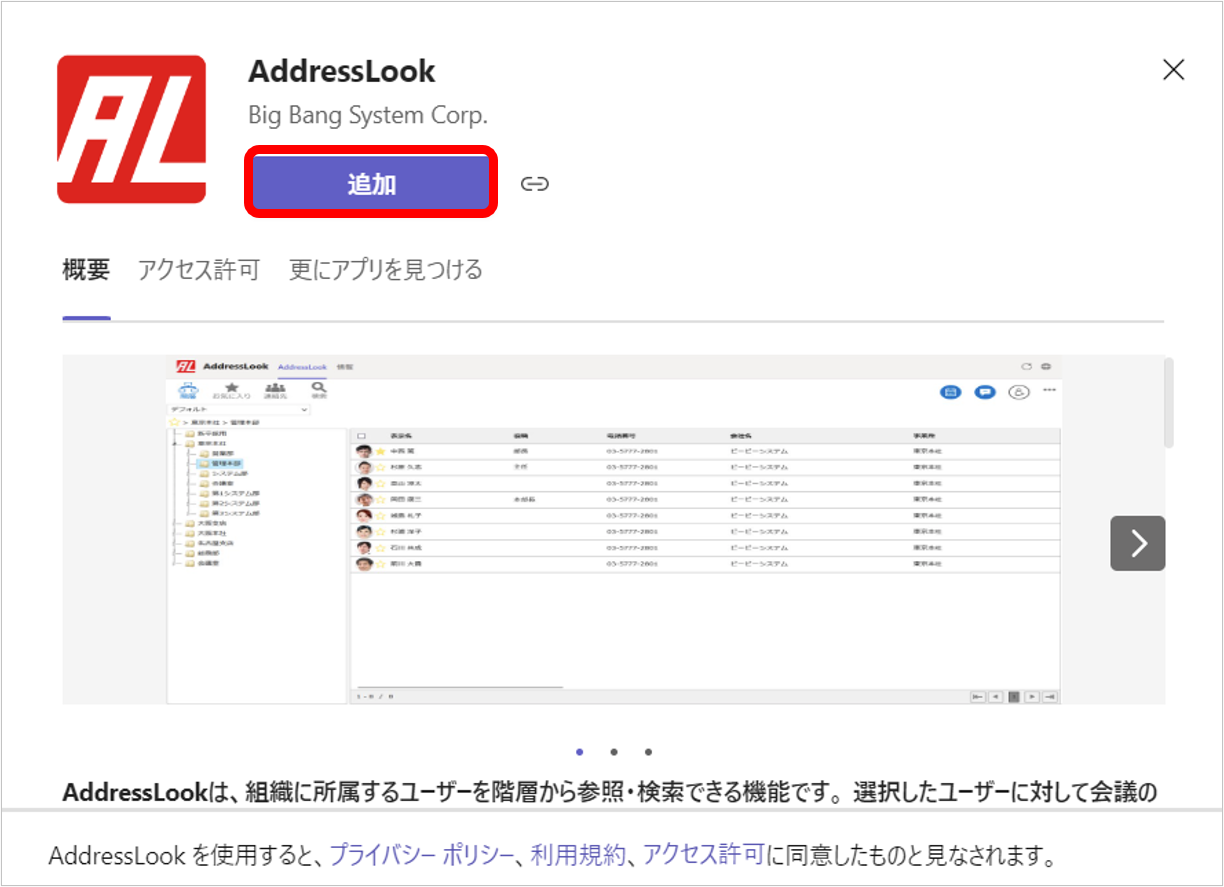 Microsoft Teams に AddressLook をインストールする方法について説明します。