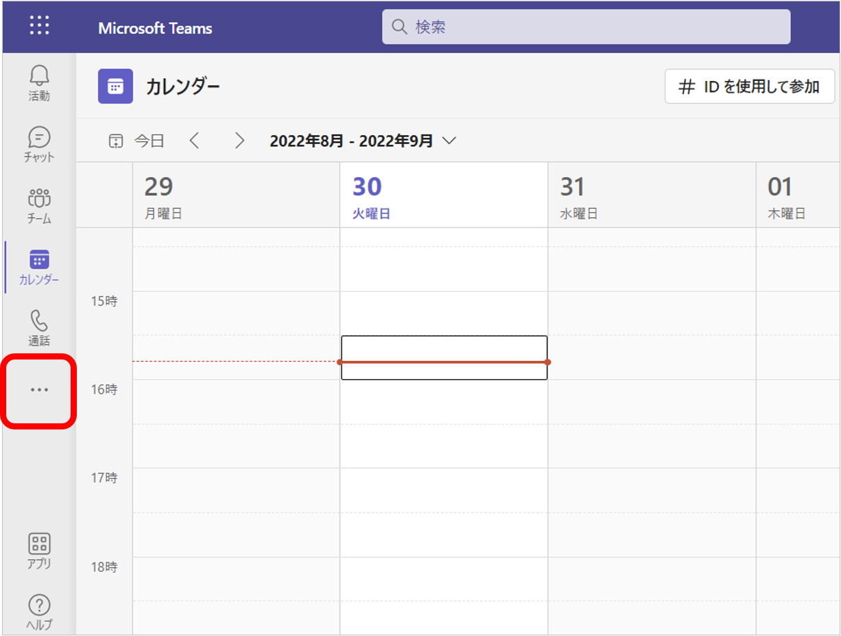 - Teamsの左側にある「その他のアプリを表示する」をクリックします。