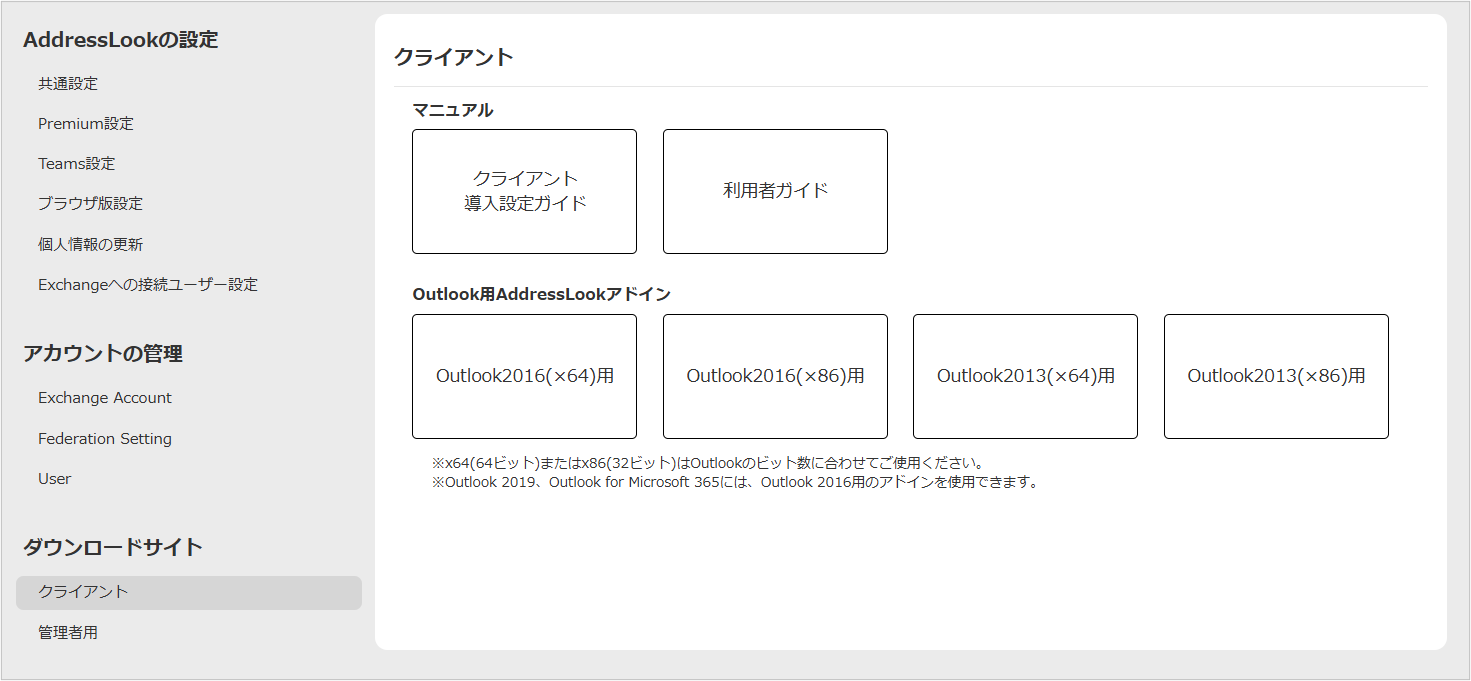 AddressLookのマニュアルやアドイン、関連するツール、証明書などをダウンロードすることができます。