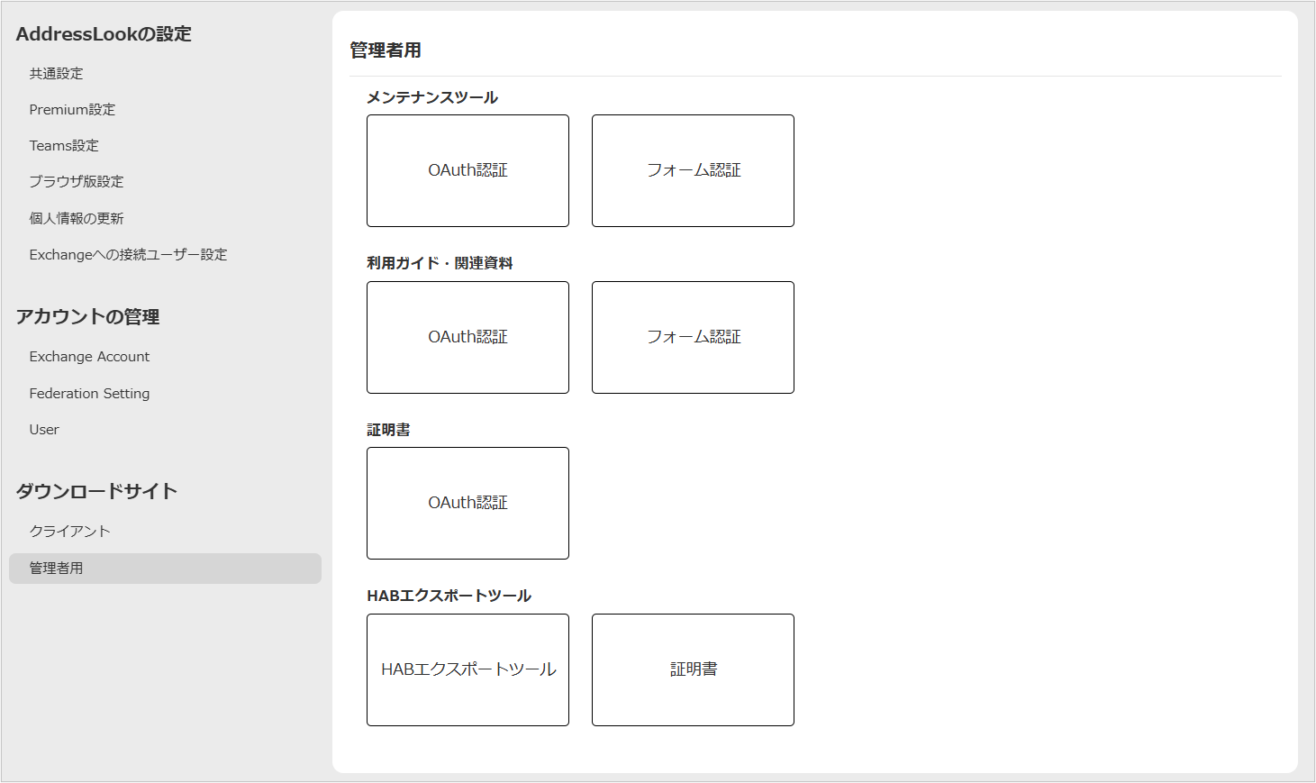 | メンテナンスツール | 利用する認証方法に合わせてメンテナンスツールをダウンロードすることができます。