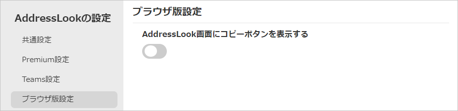 ブラウザ版AddressLookの利用に関する設定を行うことができます。