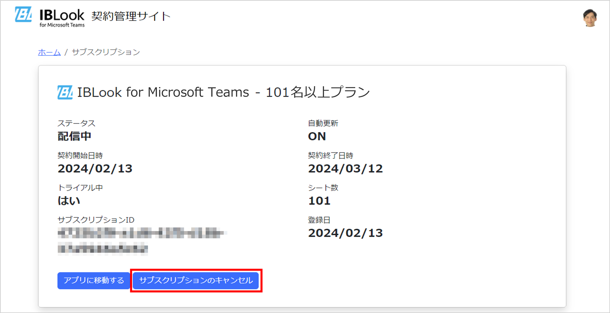 解約が完了すると、IBLook for Microsoft Teamsが利用できなくなります。