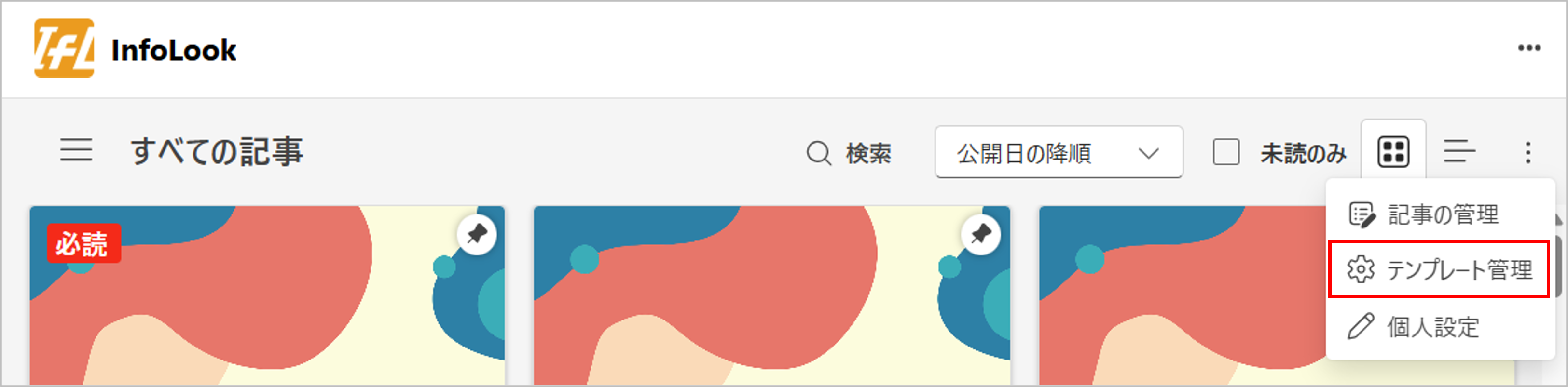 - メニューの「テンプレート管理」をクリックします。
