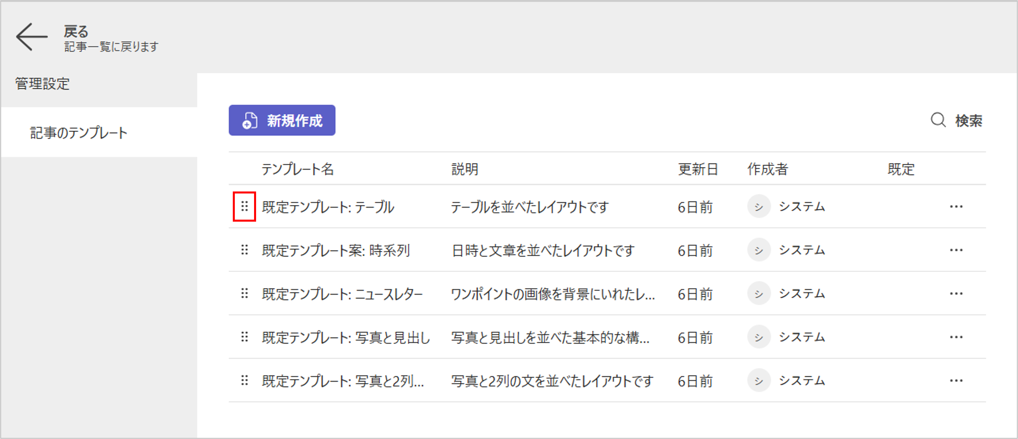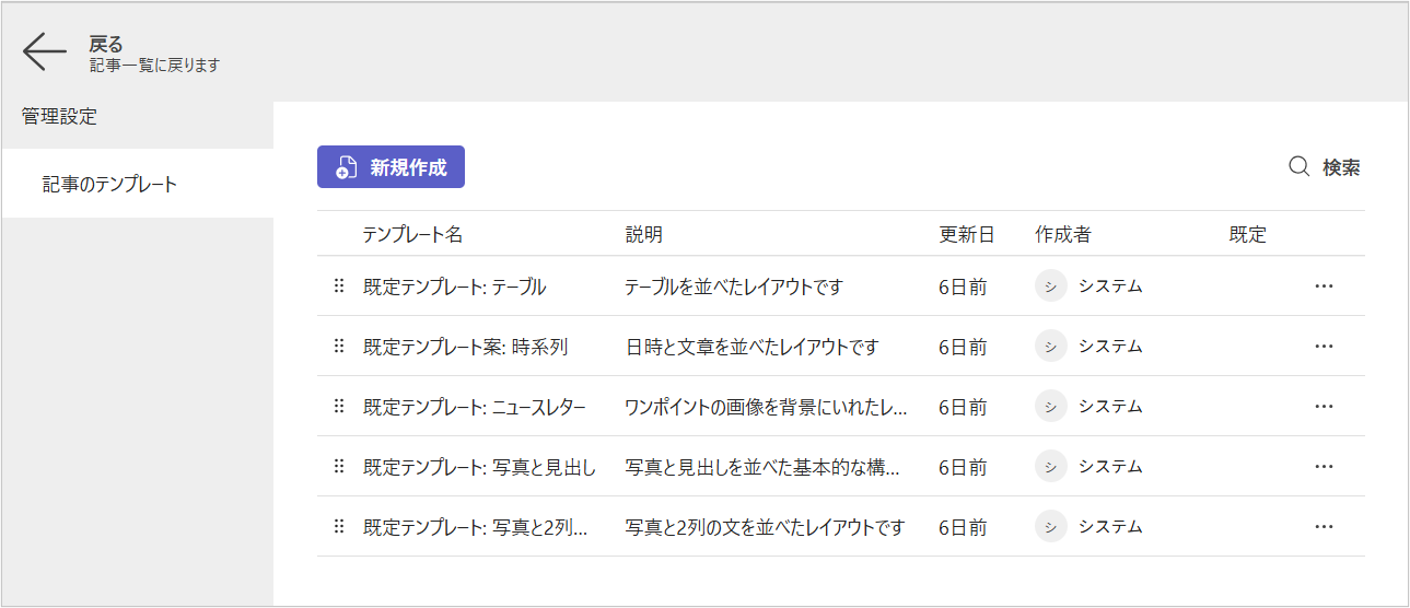 - 記事のテンプレート管理画面が開きます。