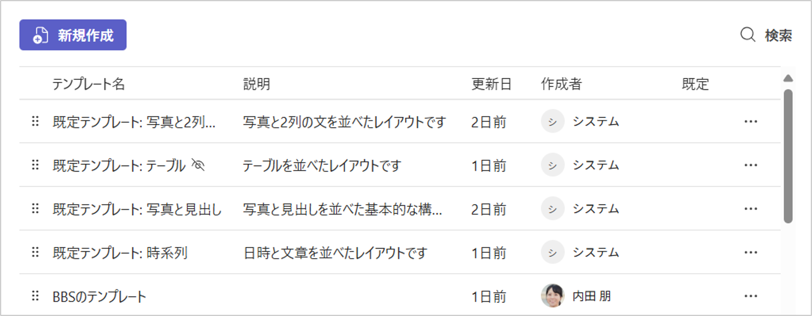 ・テンプレートの新規作成