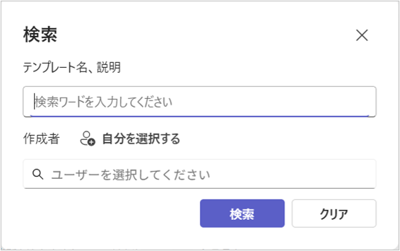 - テンプレート名または説明を入力するか、記事の作成者を設定して「検索」ボタンをクリックします。