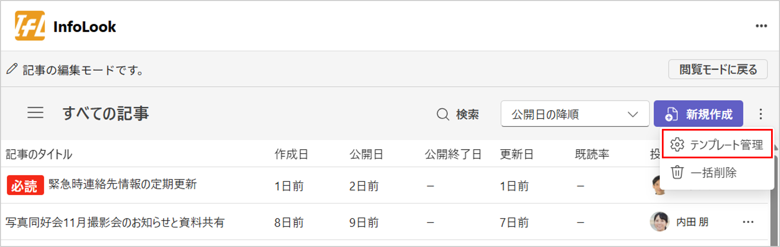既存の記事からテンプレートを作成する方法につきましては、投稿者ガイドの「記事からテンプレートを作成する」をご参照ください。