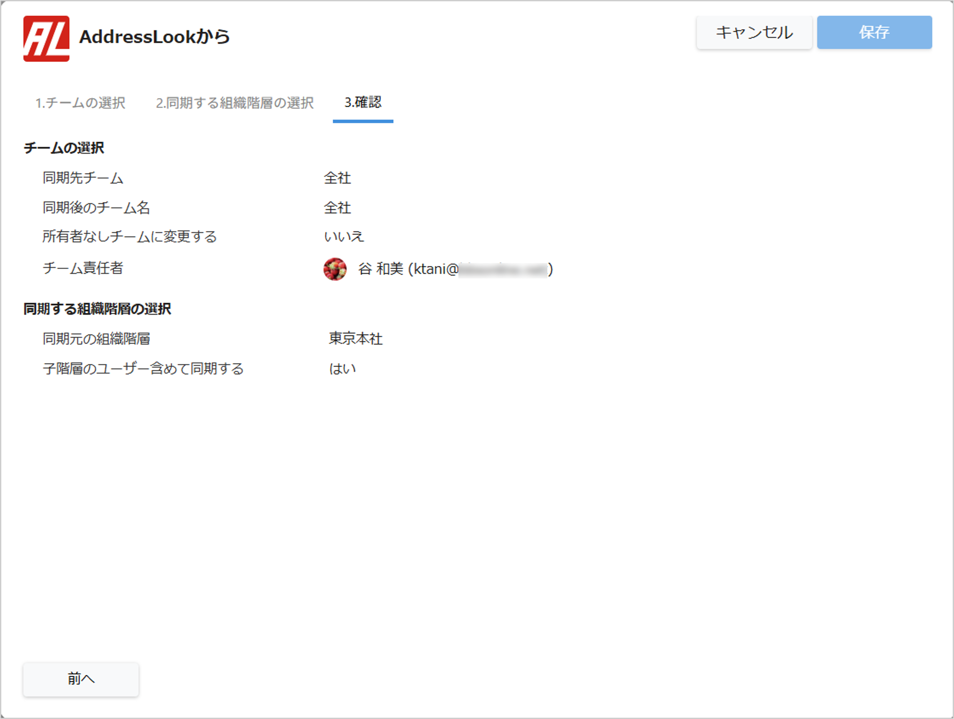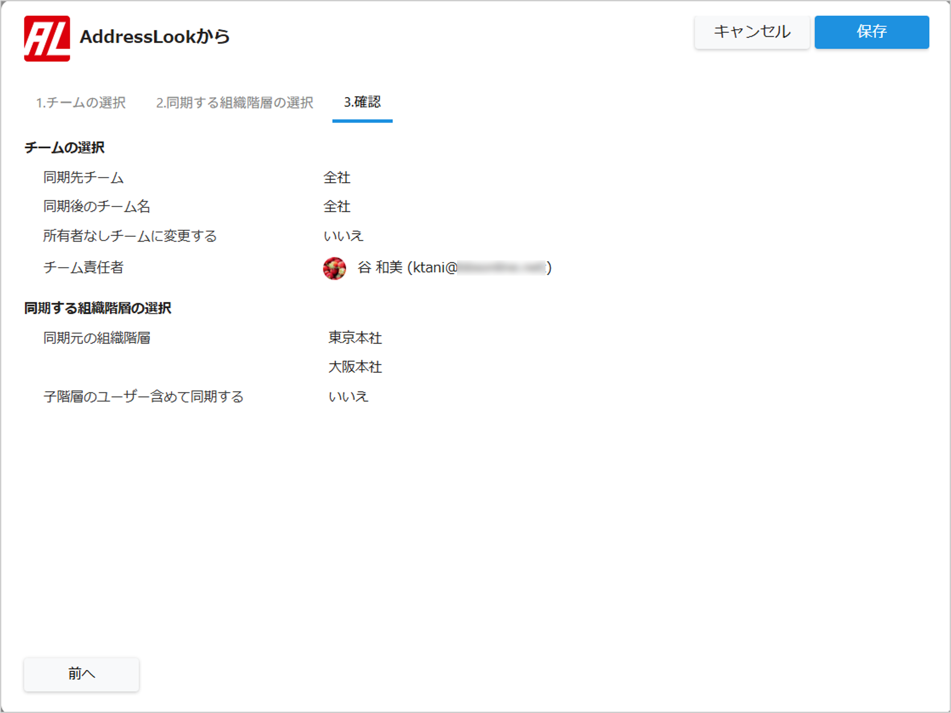 「キャンセル」ボタンをクリックすると、同期設定を中断し、AddressLookからの同期設定画面を閉じます。