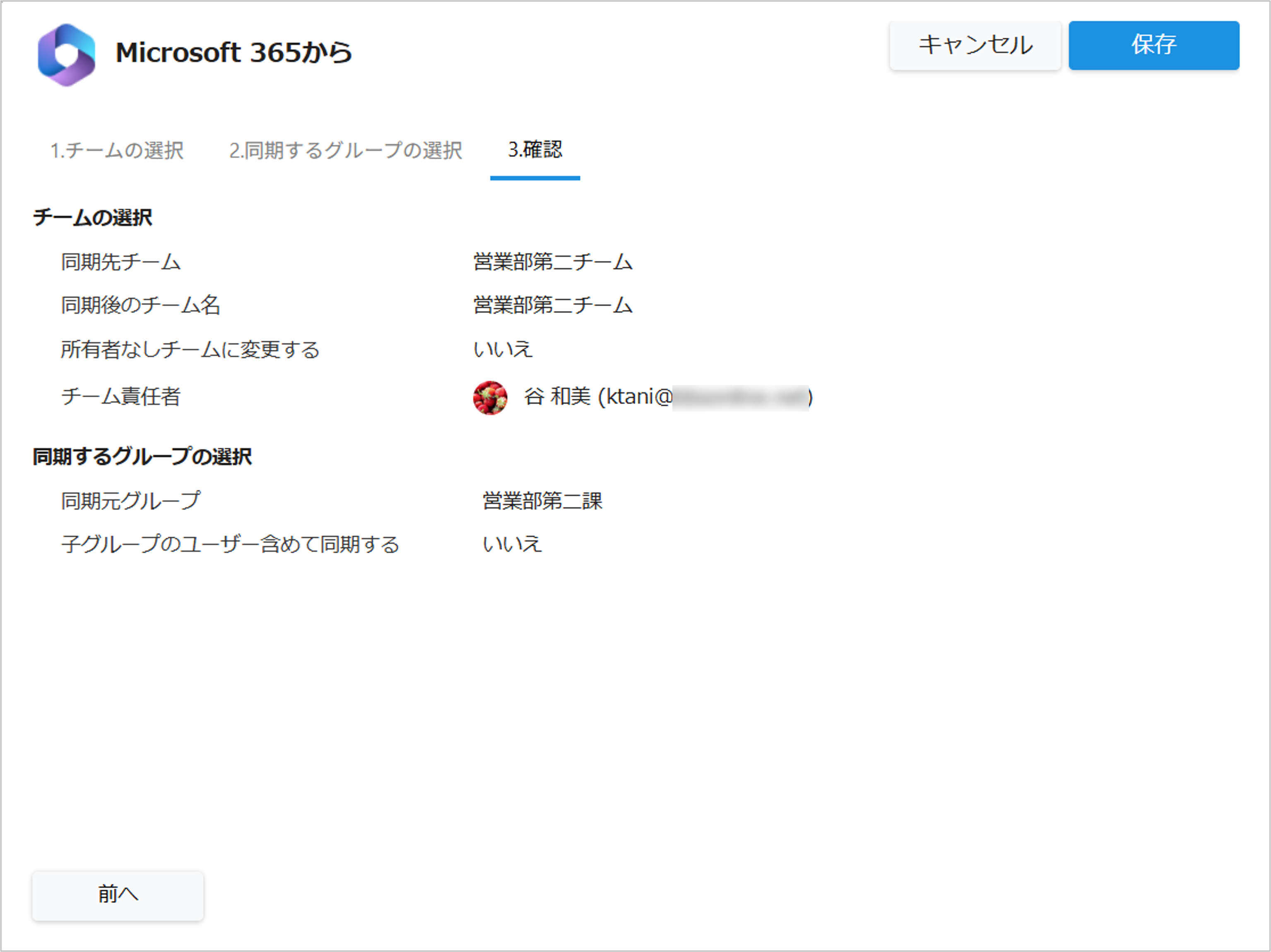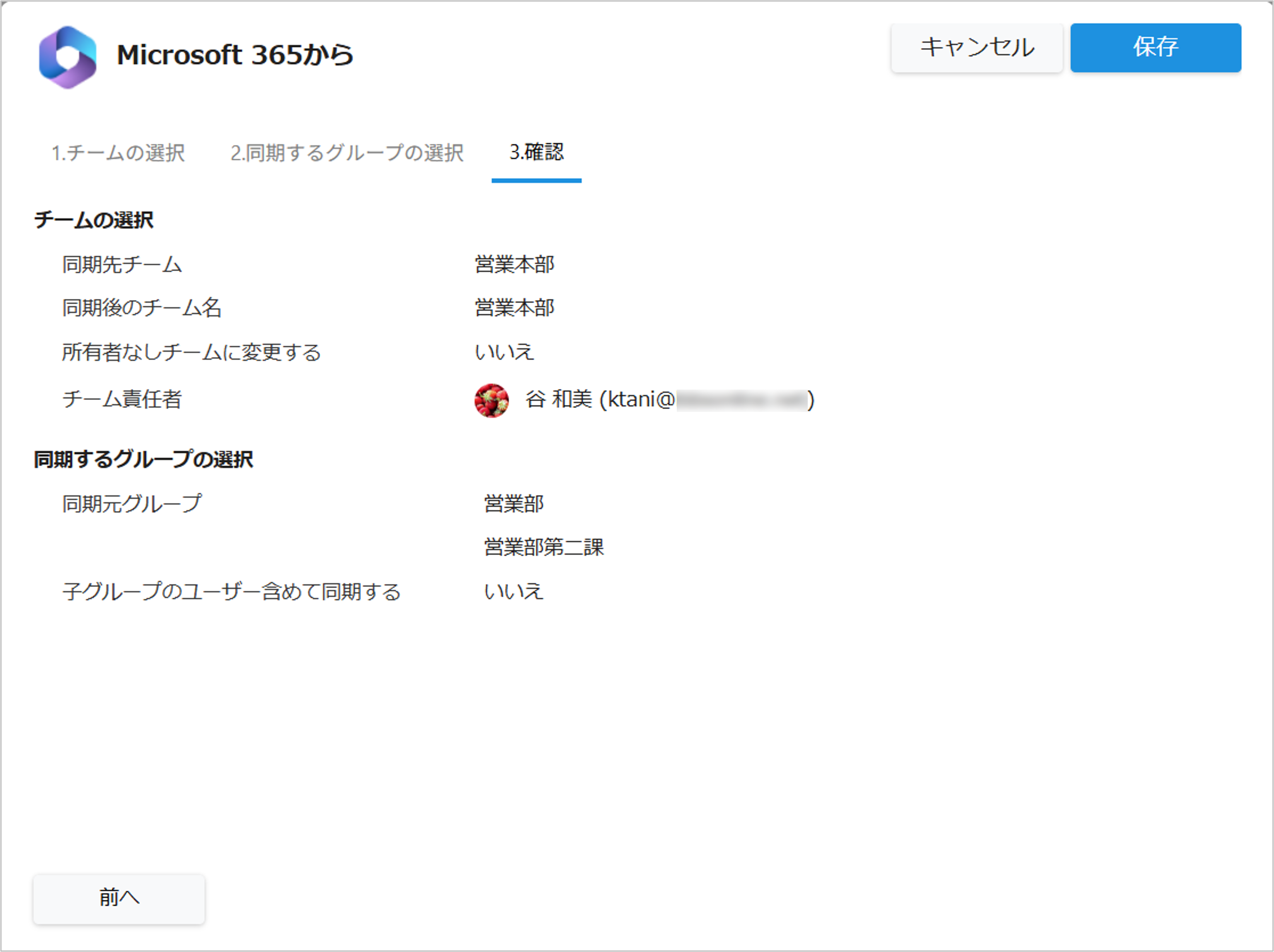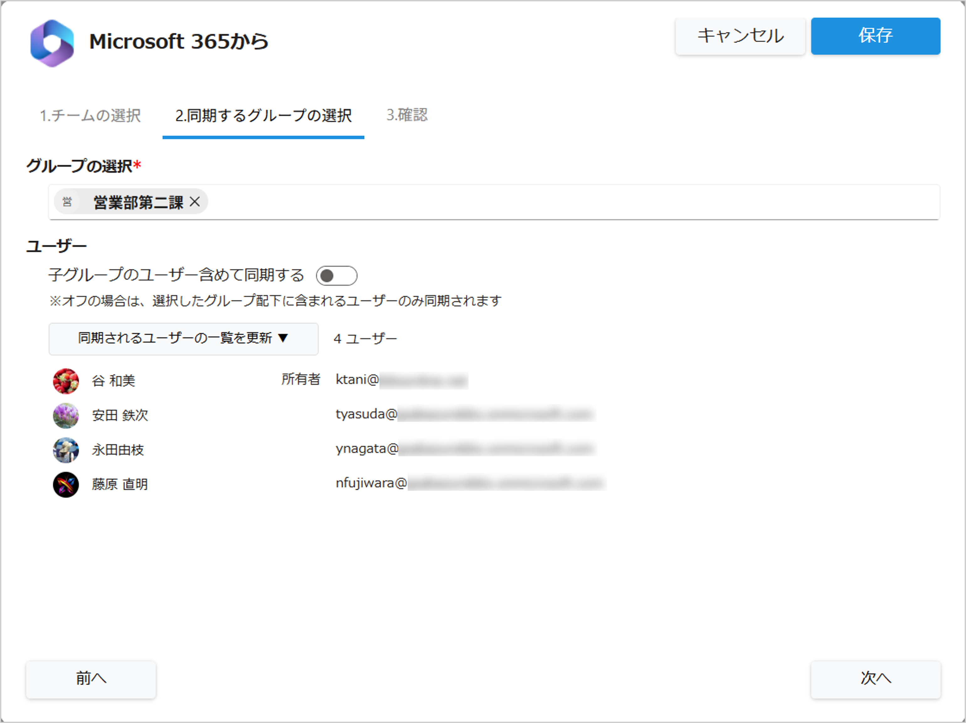 「キャンセル」ボタンをクリックすると、同期設定の編集を中断し、Microsoft 365からの同期設定の編集画面を閉じます。