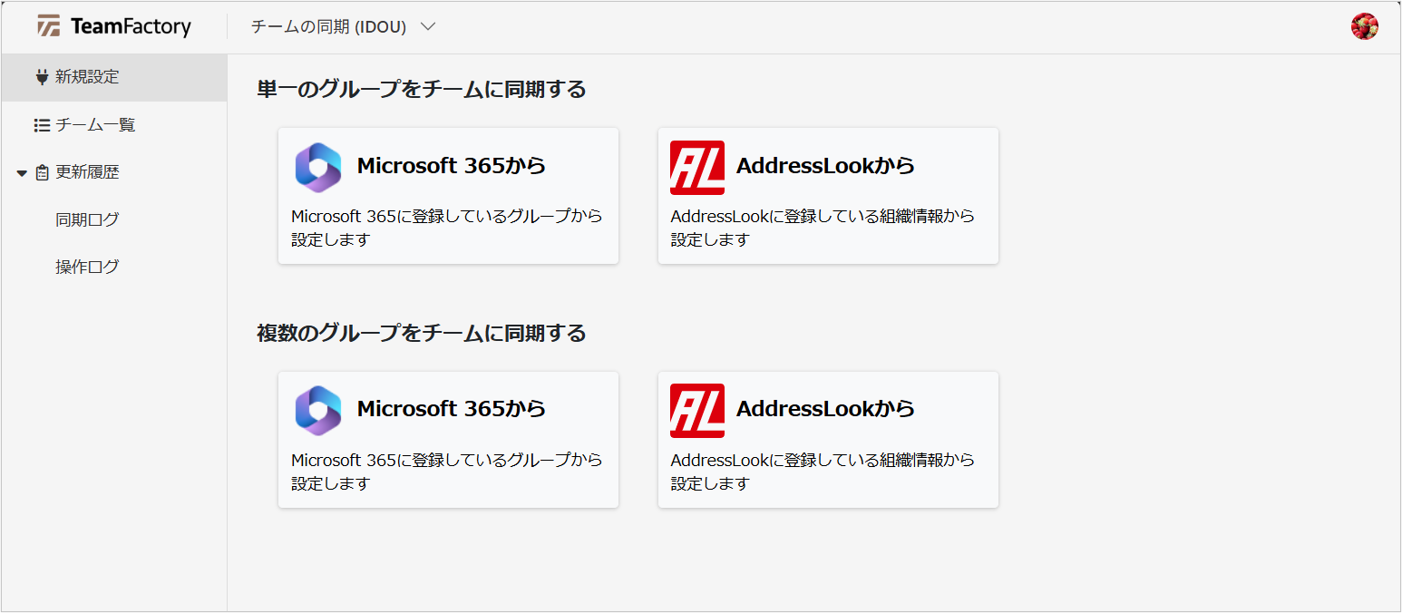 IDOUは、Microsoft Entra 管理センターで作成された Microsoft 365グループ、配布リスト、セキュリティグループや、Lookシリーズで提供しておりますAddressLook(階層型アドレス帳)と、Microsoft Teamsのチームを同期するための機能です。