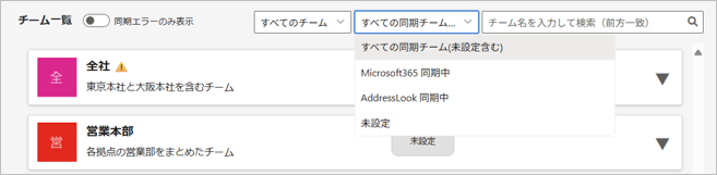 | すべての同期チーム(未設定を含む) | 同期の状態にかかわらず、すべてのチームを表示します。 |