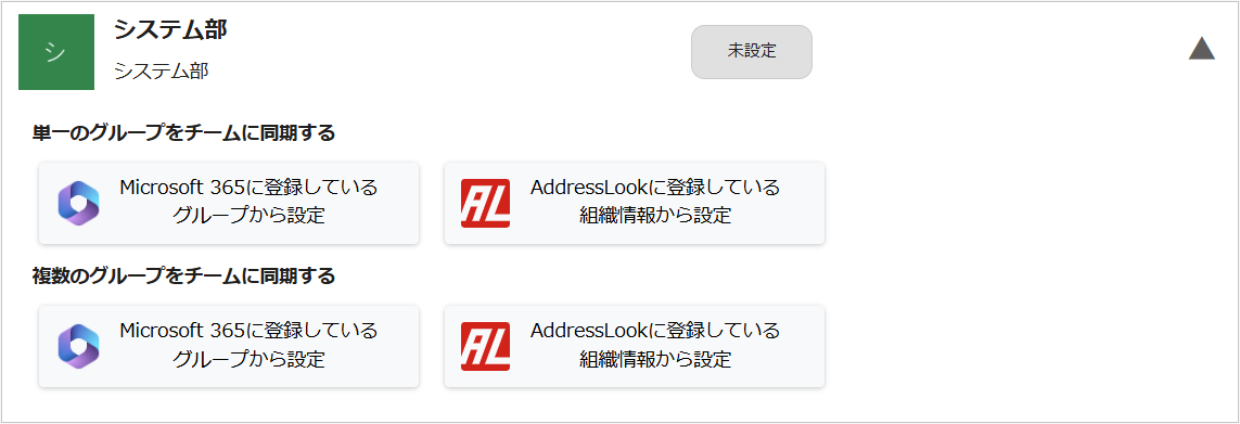 | 未設定 | 同期の設定をしていないチームのみ表示します。 |