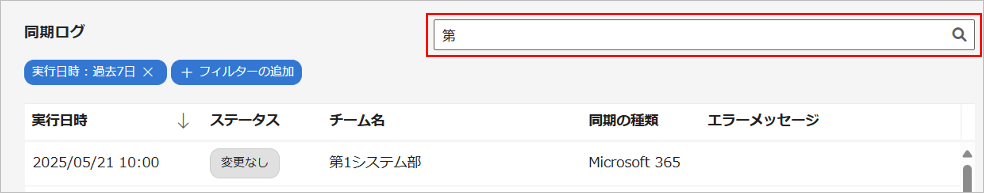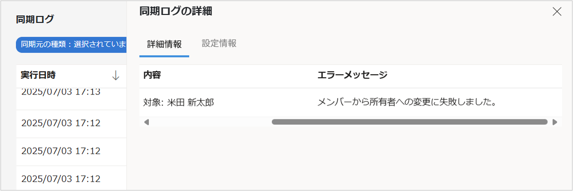 | 実行日時 | 同期が実行された日時を表示します。 |