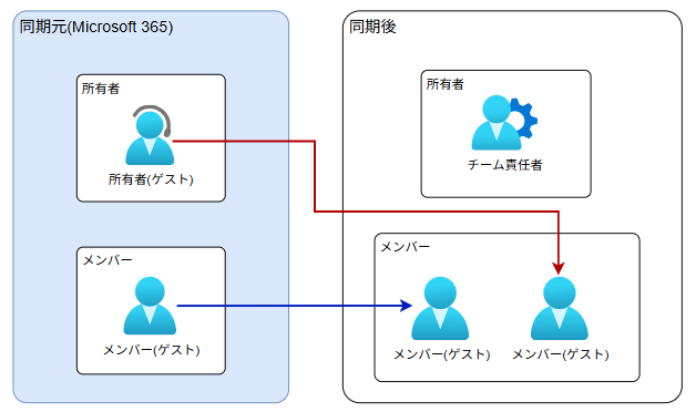 同期元のグループでゲストユーザーをチームの所有者に設定している場合、ゲストユーザーはチームの所有者ではなくメンバーとして同期されます。