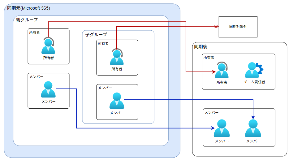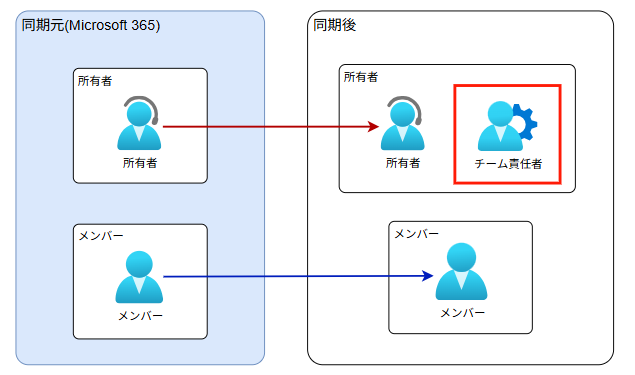 親グループの所有者は、同期後のチームではメンバーとして設定されます。